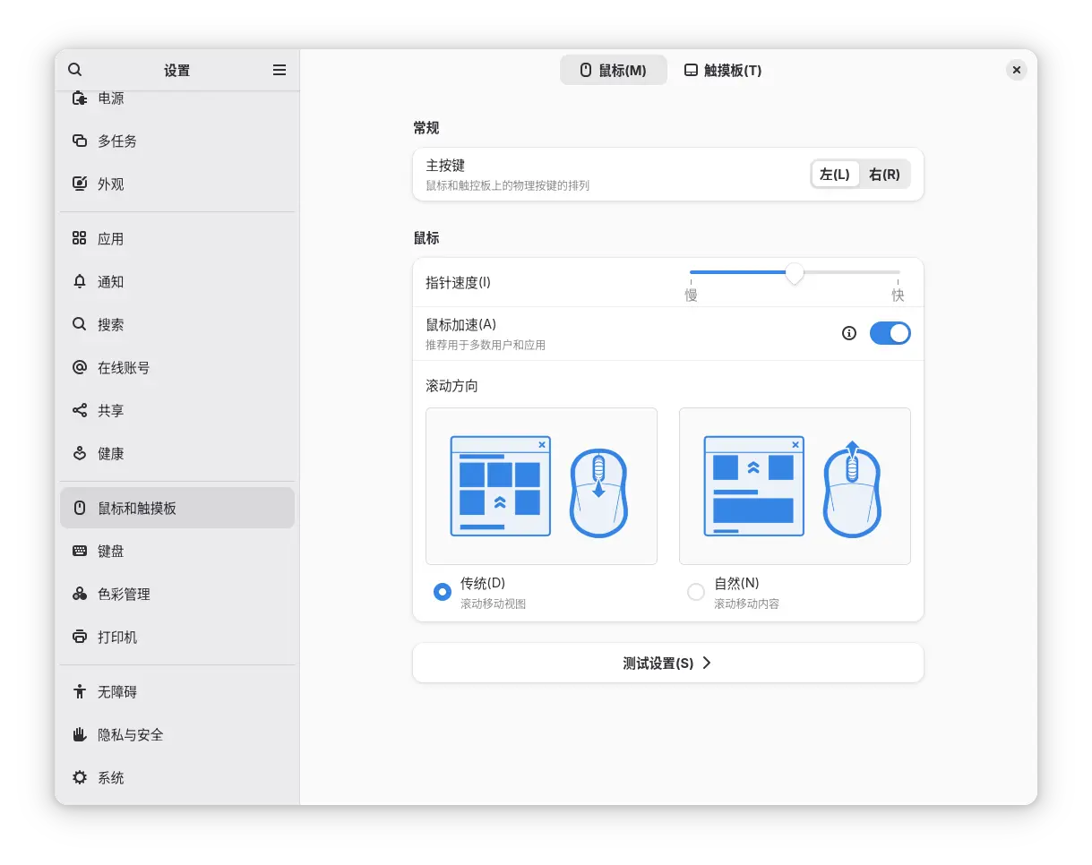 鼠标配置和 Mac 类似可以设置滚动方向