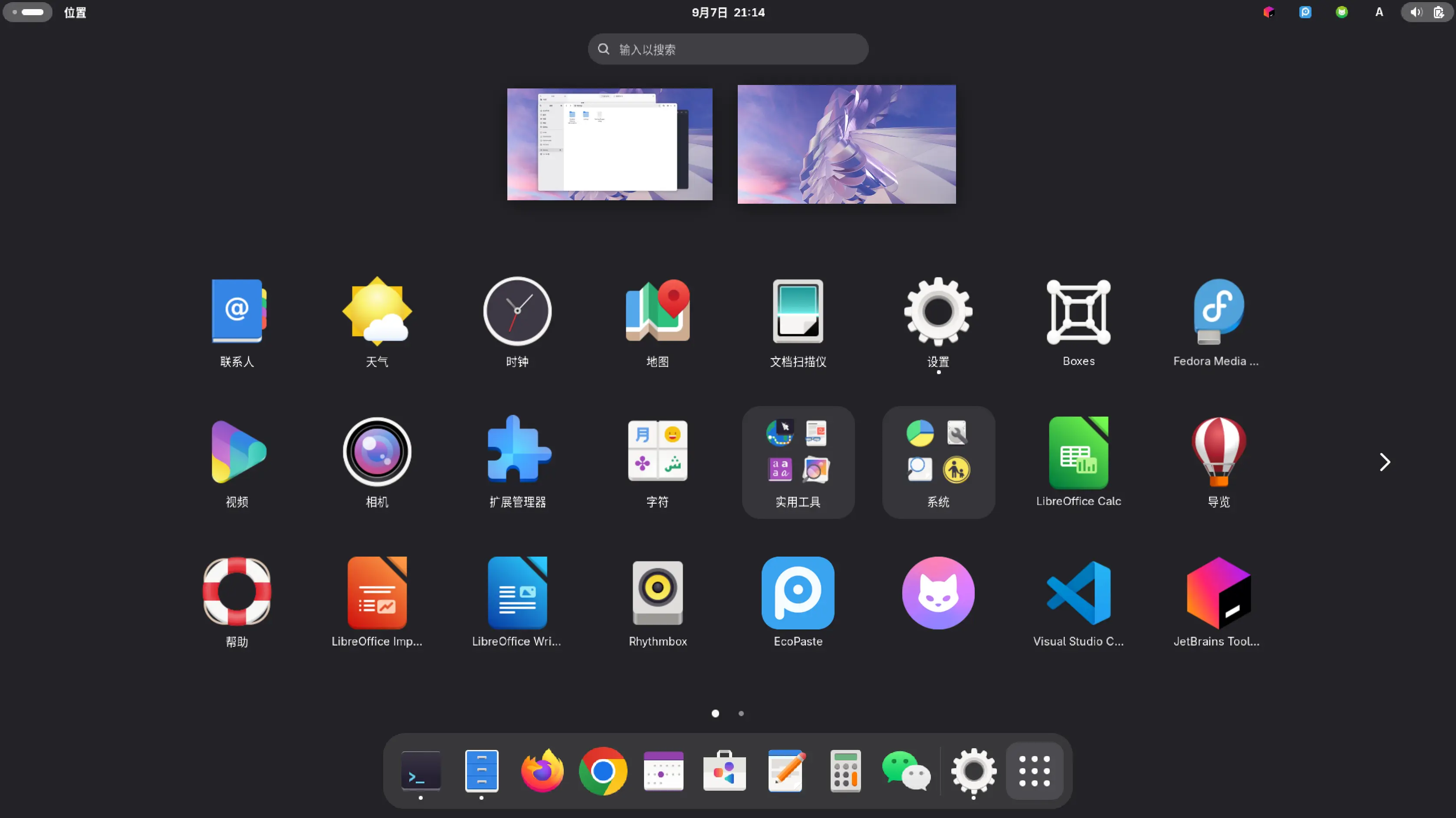 选择 GNOME 就是为了这套界面,这个启动台当年我在 Debian 上第一次用到就喜欢上了