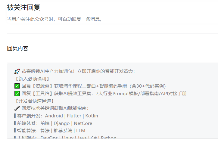 原本「曦远Code」的被关注自动回复是这样的,感觉营销味儿太重了