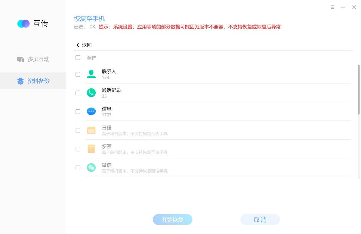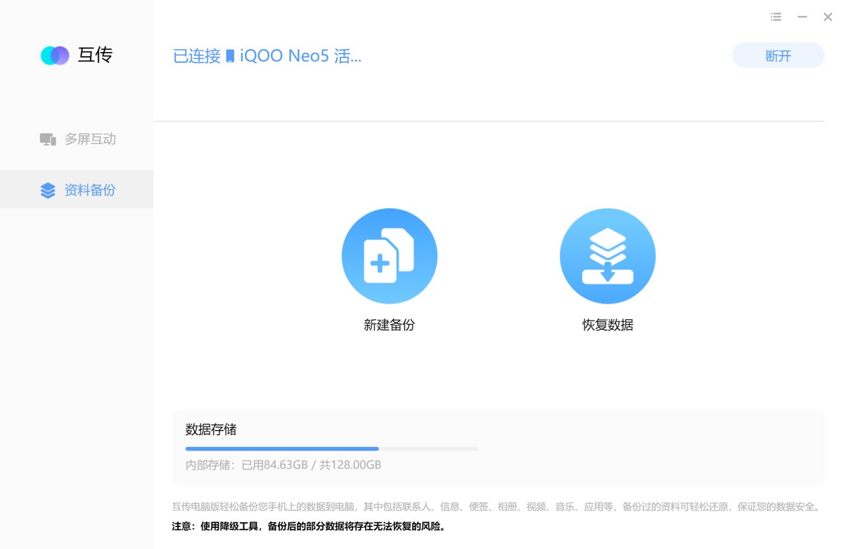 进入备份界面后,照片、联系人、应用数据统统能备份。